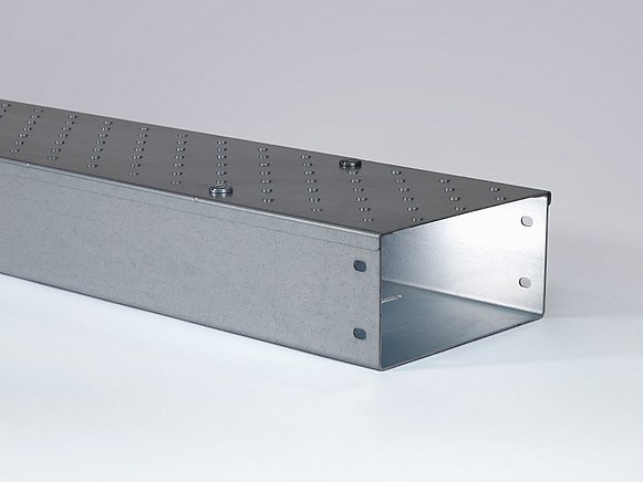 Le chemin de câbles praticable PFLITSCH est fabriqué en acier galvanisé de haute qualité et est disponible en sept sections standard de 100 mm à 600 mm de largeur. Le gaufrage antidérapant (R10) directement dans le matériau du couvercle garantit la sécurité dans les zones praticables, sans aucune tôle striée rapportée. Avec une charge maximale de 200 kg (2 000 N), le chemin de câbles praticable est particulièrement résistant et durable. Un revêtement par poudre selon RAL, par exemple en jaune signalétique (RAL 1003), est disponible en option. Le chemin de câbles praticable PFLITSCH est conforme à toutes les normes applicables et est certifié UL (numéro d'homologation E301309) et VDE selon la norme DIN EN 50085-2-2.